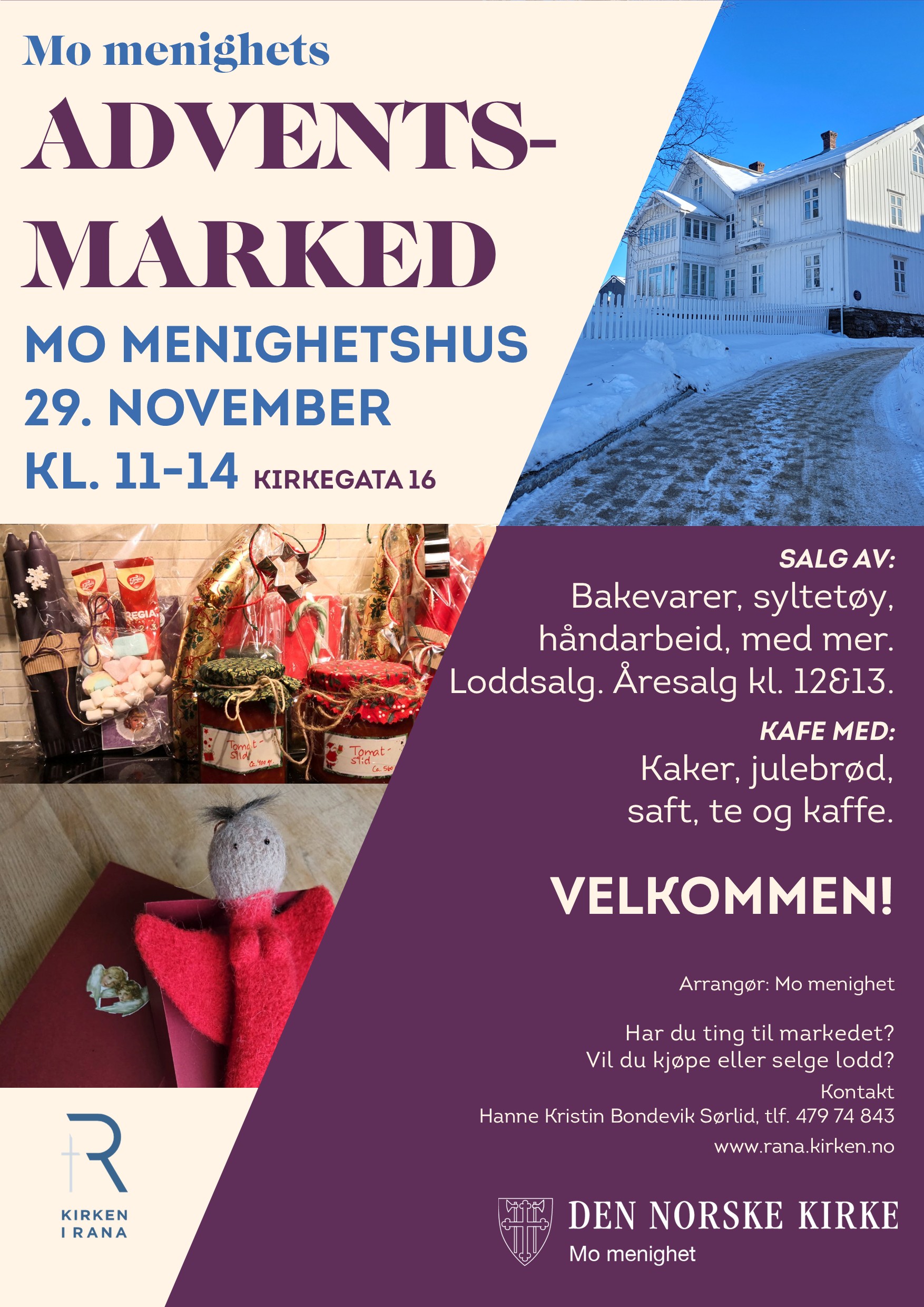 Velkommen til et hyggelig adventsmarked på Mo menighetshus (Kirkegata 16) lørdag 29. november kl. 11-14!